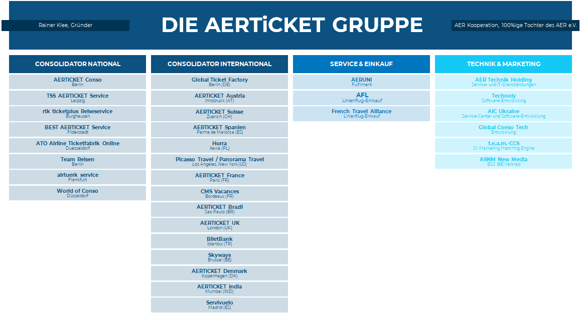Die AERTiCKET Gruppe ist weltweit einer der größten Full-Service-Consolidator. Zur Gruppe gehören rund 25 nationale und internationale Consolidator.